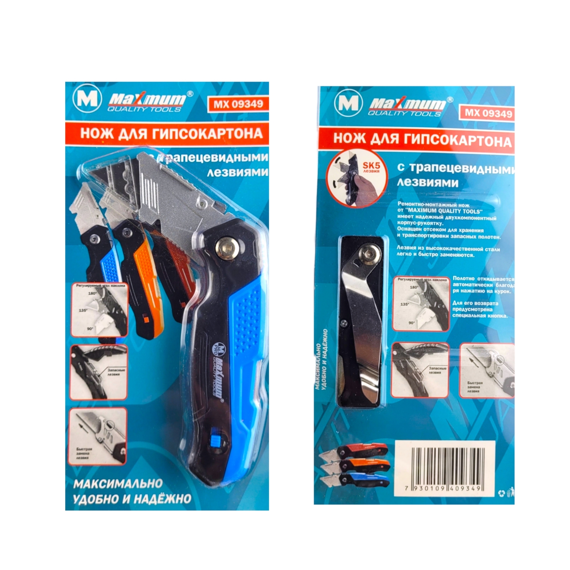 Нож строительный/канцелярский с кнопкой для быстрой смены угла резки и системой Quick Change для быстрой смены лезвий от "Maximum Quality Tools" предназначен для разрезания гипсокартона, бумаги, обоев, картона, ковролина, линолеума и т.п.
