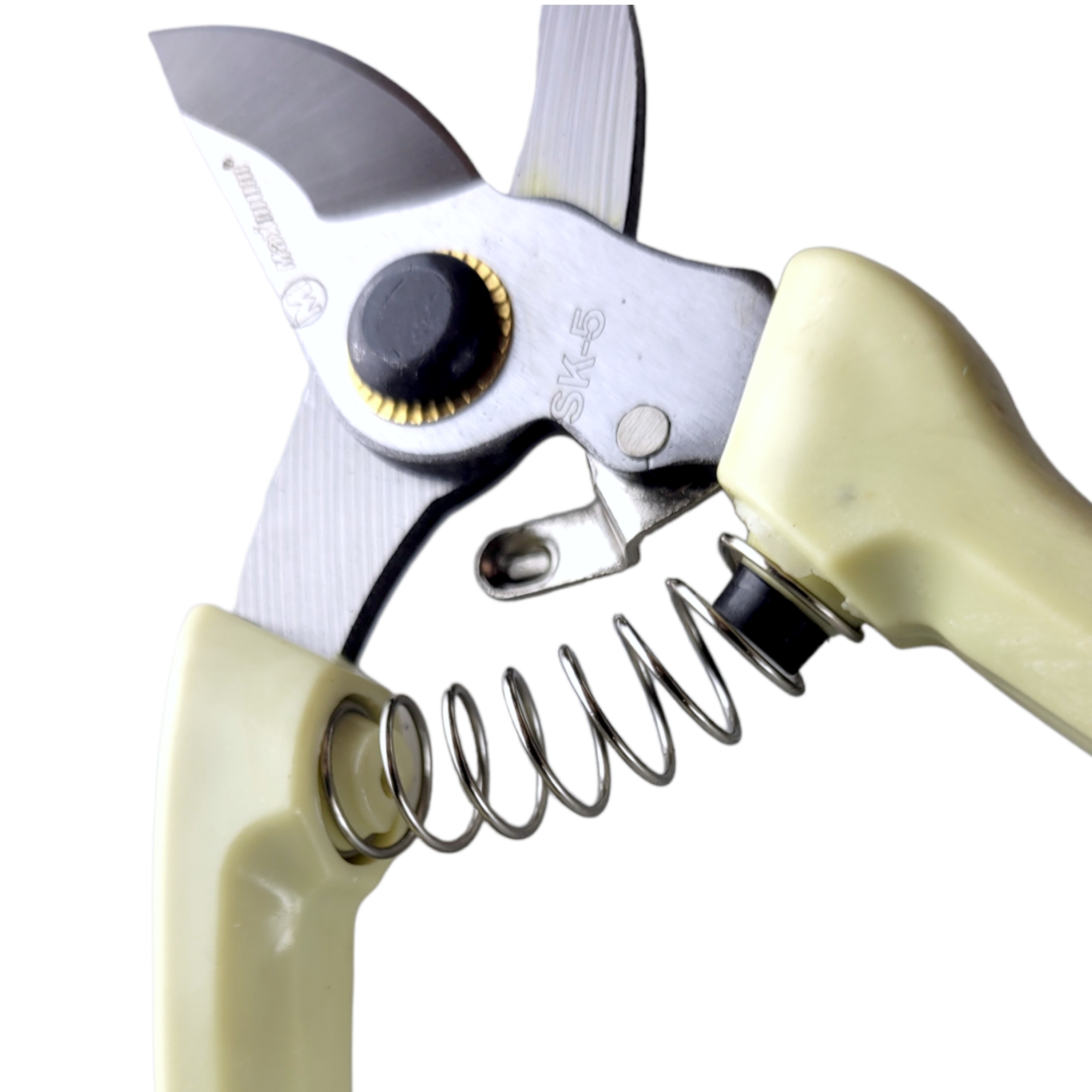 Секатор с пластиковыми рукоятками – это садовые ножницы с лезвиями, выполненными из высокопрочной инструментальной стали SK5. Чтобы эта несложная конструкция могла справляться с толстыми ветками верхнее лезвие (оно является рабочим) качественно заточено и отшлифовано. Инструмент позволяет сочетать длительный рабочий ресурс с хорошим качеством резания. Общая длина 175 мм, длина лезвия 45 мм.