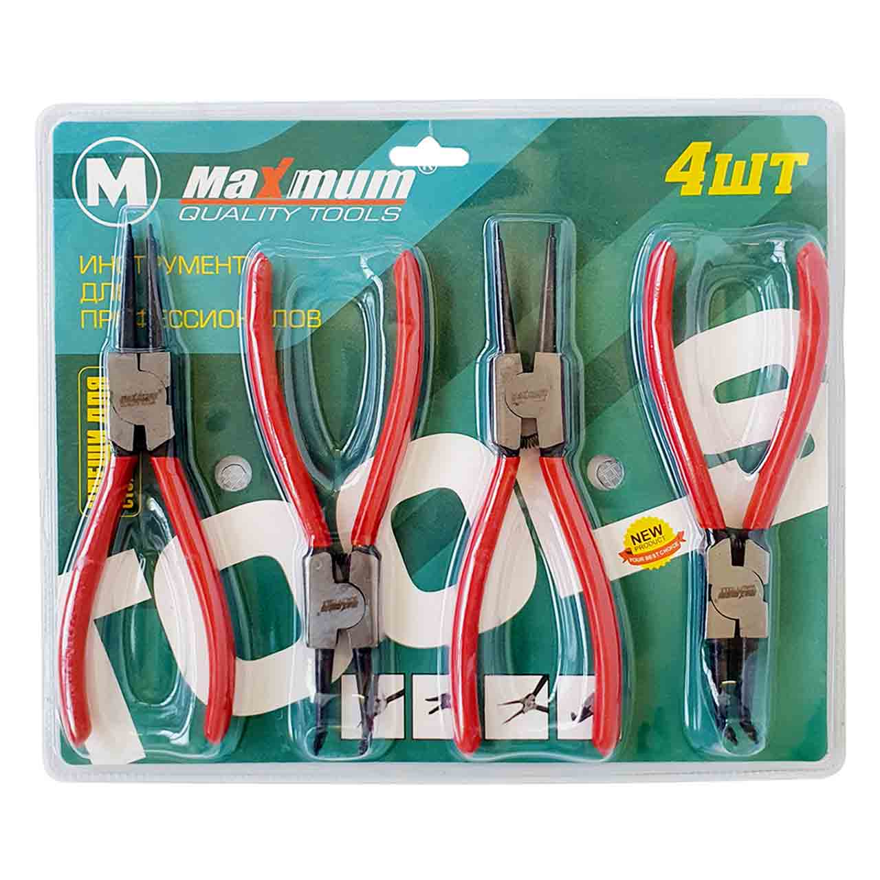 Набор щипцов для стопорных колец от «Maximum» используется в автомастерских или на производстве для демонтажа внешних и внутренних стопорных колец.