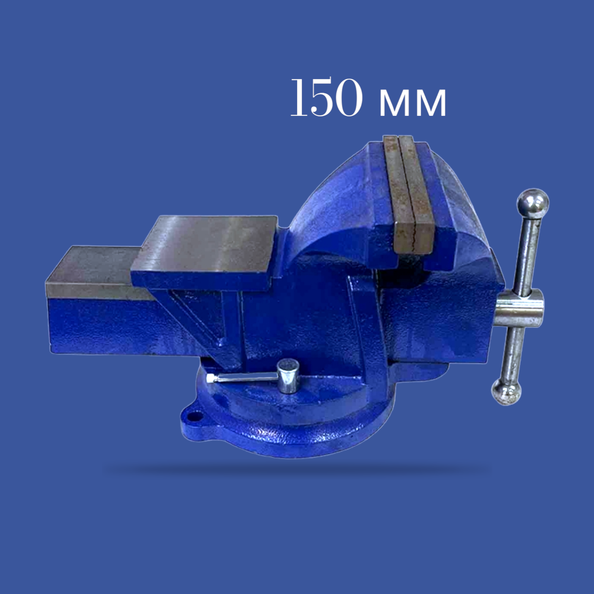 Массивный чугунный корпус и основание покрыты краской, защищающей тиски от коррозии и увеличивая их рабочий ресурс. Корпус может вращаться на 360° относительно основания, именно это способствует удобной обработке заготовки. Наличие наковальни расширяет функциональные возможности слесарных тисков.