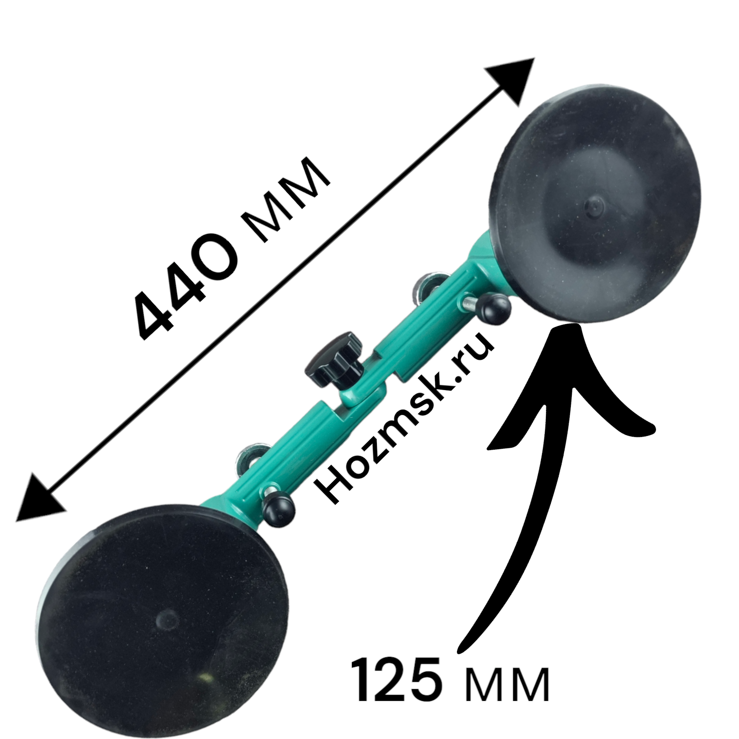 Угловой стеклодомкрат с двойной присоской предназначен для фиксации, подъема и транспортировки стекол, зеркал, плитки и других изделий и материалов с плоскими гладкими поверхностями. Специальный регулировочный винт на рукоятке позволяет сгибать конструкцию и регулировать угол и растояние между резиновыми тарелками. Две присоски диаметром по 120 мм фиксируются с помощью рычагов. Конструкция создана из алюминия и покрыта краской, которая предотвращает появление царапин и коррозии.
