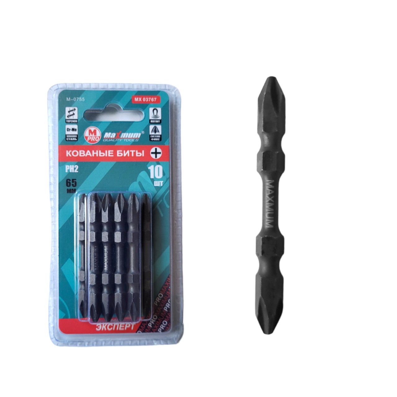 Набор бит кованых PH2, 65 мм, 10штук, "MAXIMUM" M-0766, с матовым покрытием из серии "Эксперт" отличается повышенной надежностью, прочностью и долгим сроком эксплуатации. Насадки изготовлены из кованой стали.