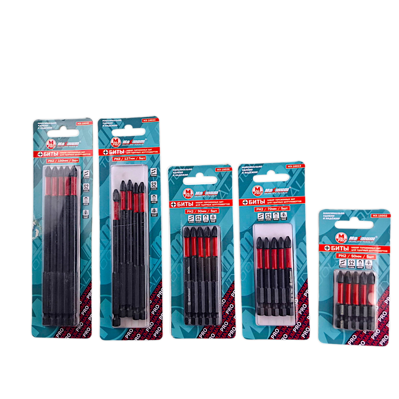 Набор бит 50 мм включает в себя 5 насадок с шестигранными хвостовиками 1/4.
