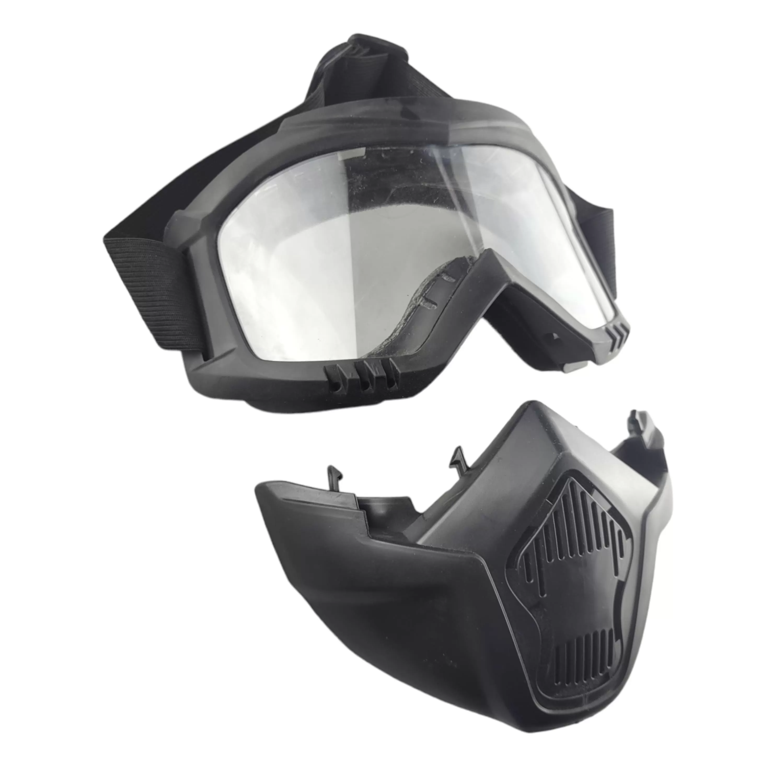 Очки-маска защитные имеют разборную конструкцию трансформер и прозрачное стекло (без тонировки) для поездок на электровелосипедах, электросамокатах, байках и электроскутерах, а также станут удобной защитой при ремонтных работах.
